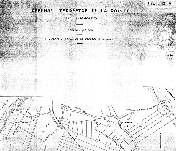 Plan des défenses terrestres de la pointe de Graves (plan n° 12, VII), rapport Pinczon du Sel, vers 1946-1947, Service Historique de la Marine, VincennesImmatriculation