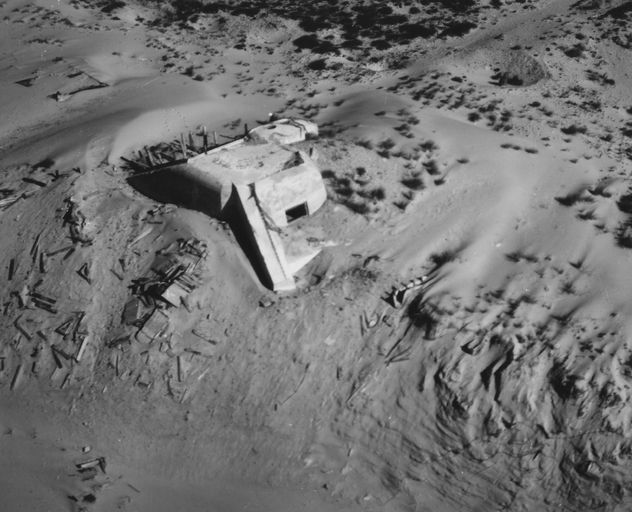 Vue aérienne de l'ensemble fortifié de Soulac : casemate de flanquement (photo n° 62, VII), rapport Pinczon du Sel, vers 1946-1947, Service Historique de la Marine, VincennesImmatriculation