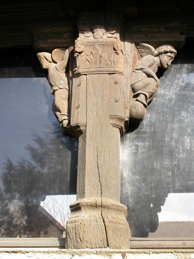 Personnages sculptés sur les aisseliers de part et d'autre d'un poteau (état de 2005).Immatriculation