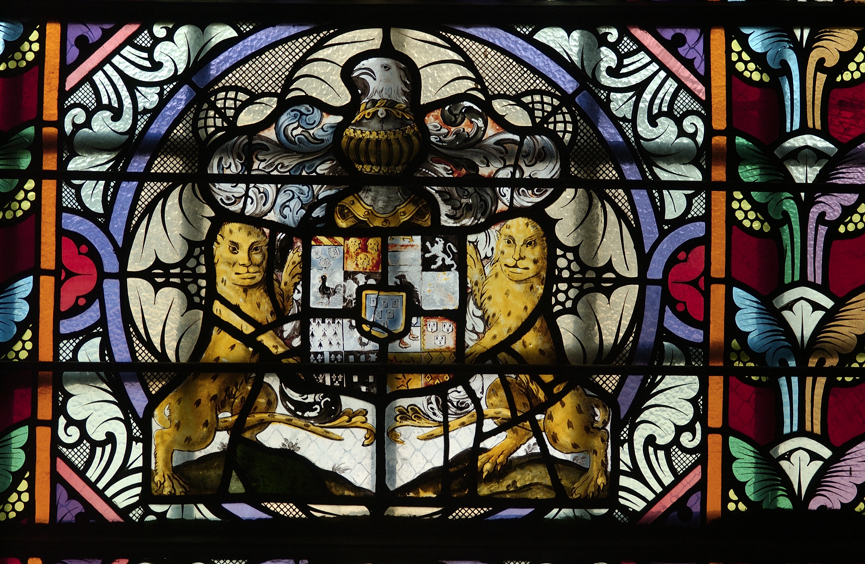 Verrière de la baie 2 : détail des armes de la famille HuchetImmatriculation