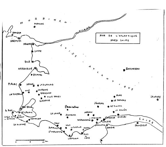 Plan des fortifications principales du mur de l'Atlantique en Pays-de-la-Loire, rapport Pinczon du Sel, vers 1946-1947, Service Historique de la Marine, VincennesImmatriculation