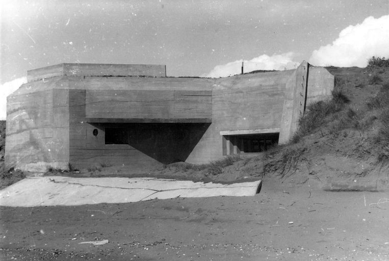 Vue de la défense éloignée de la base de sous-marins de Saint-Nazaire : casemate de flanquement, rapport Pinczon du Sel, vers 1946-1947, Service Historique de la Marine, VincennesImmatriculation