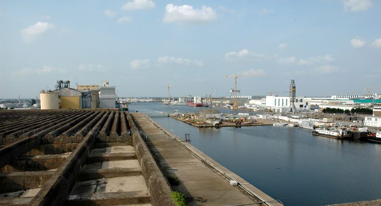 Environnement industrialo-portuaire de la base de sous-mains de Saint-Nazaire depuis la terrasseImmatriculation