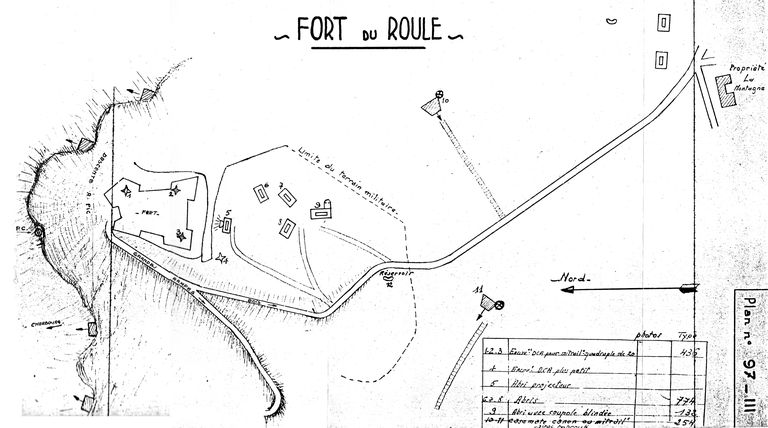 Plan de l'ensemble fortifié du Fort du Roule (plan n° 97, III), rapport Pinczon du Sel, vers 1946-1947, Service Historique de la Marine, VincennesImmatriculation