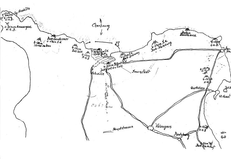 Plan des batteries allemandes du secteur de CherbourgImmatriculation