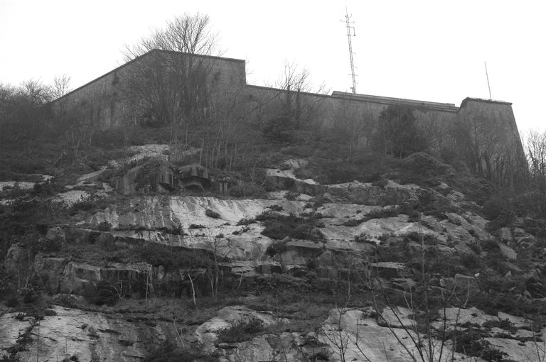 Vue générale du Fort du Roule : une casemate de la batterie d'artillerie émerge de la falaiseImmatriculation