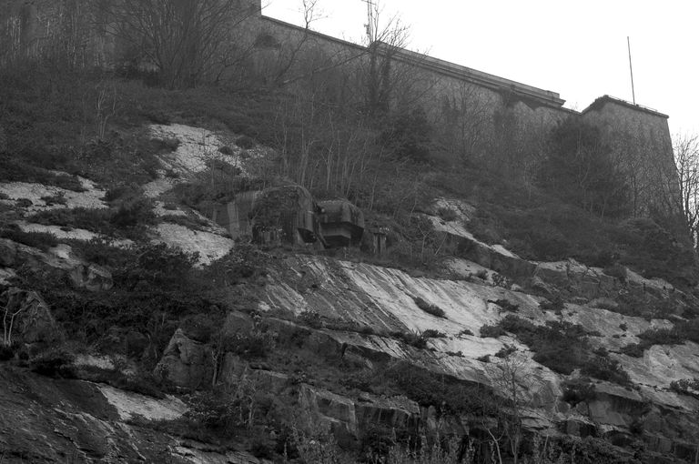 Vue générale du Fort du Roule : une casemate de la batterie d'artillerie émerge de la falaiseImmatriculation