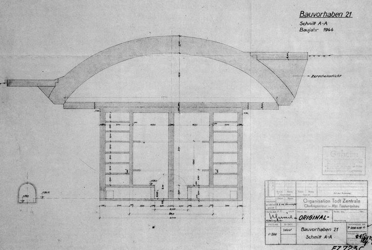 Coupe Nord-Sud de la base de V2 de Wizernes, Plan EZ 723 C (Bundesmilitararchiv)Immatriculation