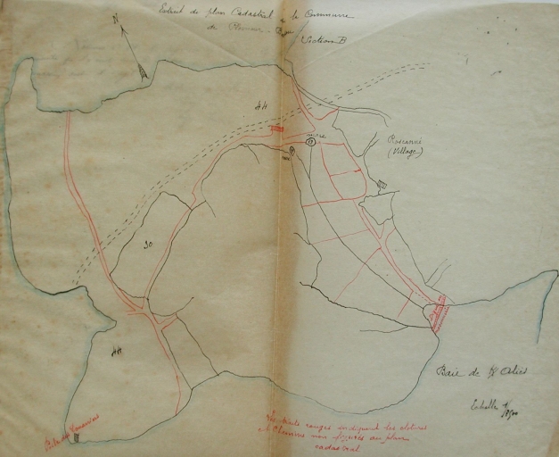 Plan, extrait cadastral, section B, daté de 1907 de Keralies et de la côte ouest de Landrellec : chemins non cadastrés, digue de Keralies, poste de douane (AD 22)Immatriculation