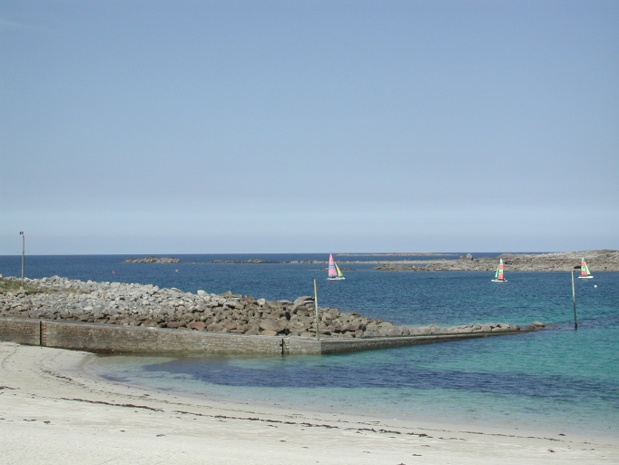 Vue générale du quai de Port Gélin à mi-marée, devant l'île Morvil au nord-ouestImmatriculation