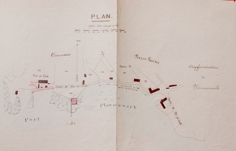 Plan : chemin de Pen Chrec'h et partie insubmersible réalisée en 1892, 1926 (AD 22)Immatriculation