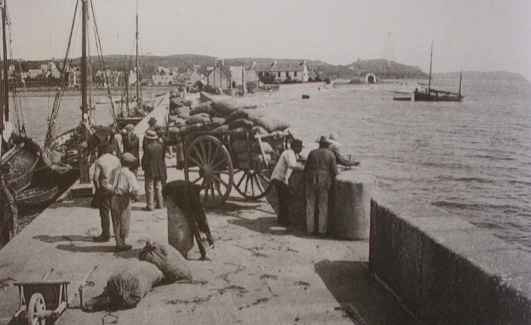 Chargement de pommes de terre au début du 20ème siècle au quai du Linkin (collection particulière)Immatriculation