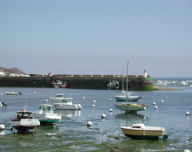 Vue de la jetée du Linkin depuis le bassin d'échouage, face sud : remarquer la tourelle cylindrique blanche du feu de la jetéeImmatriculation