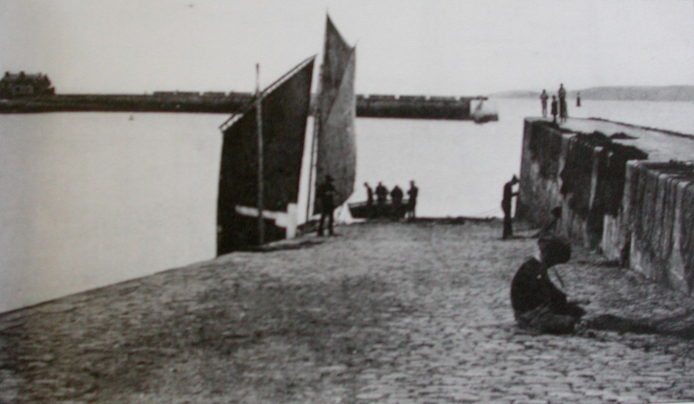 Accostage à la voile à la cale Bitousse face au quai de l'Eperon au début du 20ème siècle (collection particulière)Immatriculation
