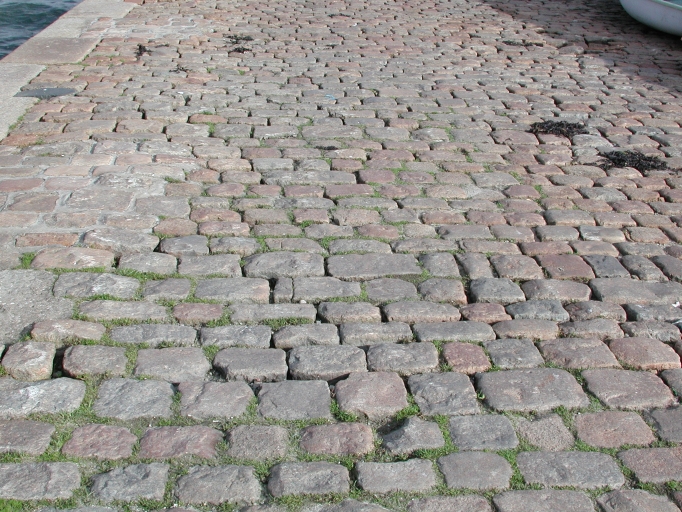 Vue de détail du revêtement en pavés de la cale BitousseImmatriculation