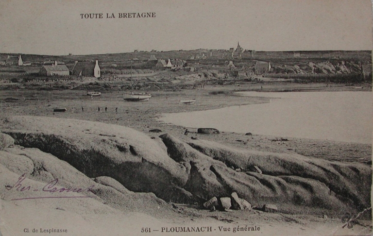 L'arrière-port depuis Crec'h Caouet, au 1er quart du 20ème siècle : Toul Feuten Gwen, Ar Blassen et Park ar Bivik (collection particulière)Immatriculation