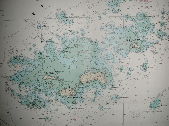Extrait : carte marine des Sept-Îles (SHOM, DDE 22)Immatriculation