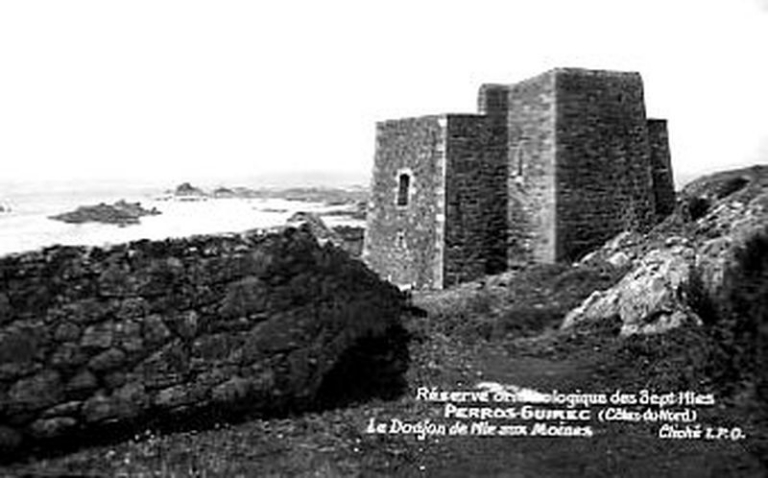 Le donjon de l'Île aux Moines, entre les deux guerres, avant sa restauration (LPO)Immatriculation
