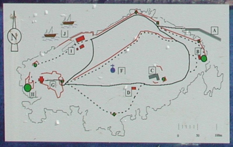 Plan du site : extrait du panneau d'interprétation du site défensif des Sept-Îles (Conservatoire du littoral)Immatriculation