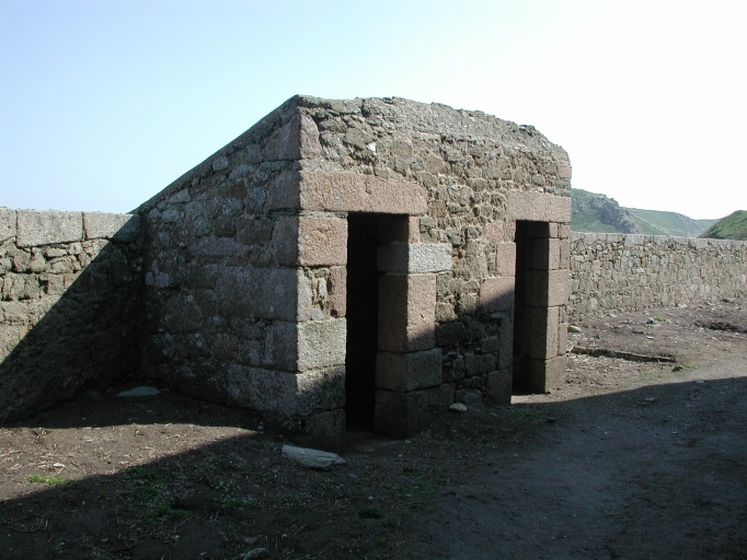 Les latrines dans la partie est de la caserne : 145 la x 220 et 170 ht, avec un toit à une seule pente, couverture en granit (1741-1742)Immatriculation