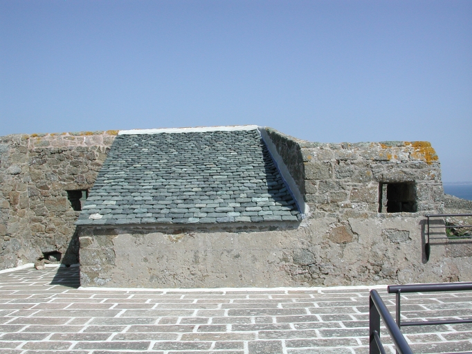 Façade ouest du fort : vue du corps de garde (murs refaits, rejointoillés et ravallement cimenté)Immatriculation