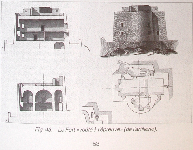 Dessin par l'ingénieur Lefebvre en 1744 : le fort voûté, entouré d'une enveloppe, à l'épreuve de l'artillerie (J.J.Salembier)Immatriculation