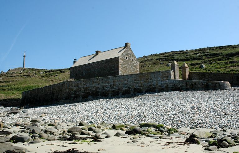 Vue de situation (état en 2006). Le terre-plein accueille la caserne, un parapet et une porte commandant la caleImmatriculation