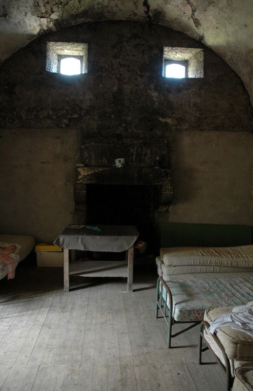 Vue intérieure : premier étage (état en 2006). Le pignon ouest est dotée d'une cheminéeImmatriculation