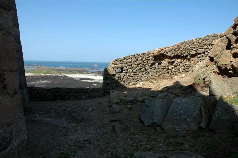 Vue du mur d'enceinte de la redoute, réduit de l'île aux Moines percé de créneaux de fusilladeImmatriculation