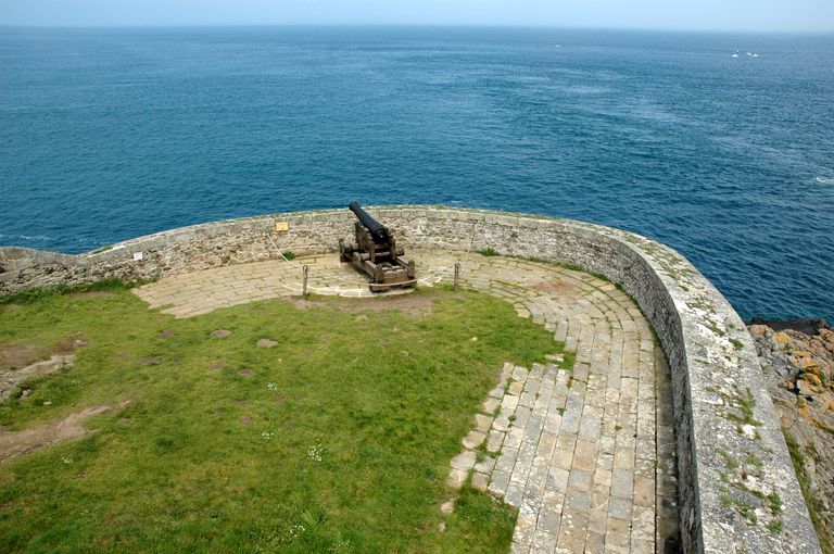Vue du Fort La Latte : reconstitution d'un canon sur affût à châssis pivotant type GribeauvalImmatriculation