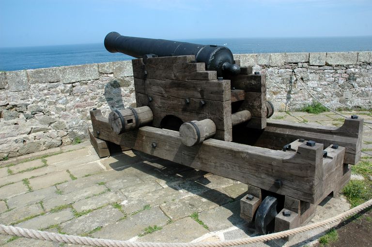 Vue du Fort La Latte : reconstitution d'un canon sur affût à châssis pivotant type GribeauvalImmatriculation