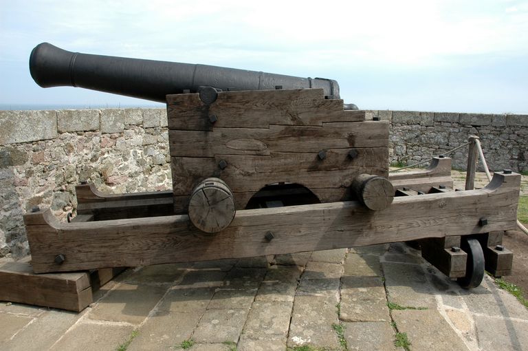 Vue du Fort La Latte : reconstitution d'un canon sur affût à châssis pivotant type GribeauvalImmatriculation
