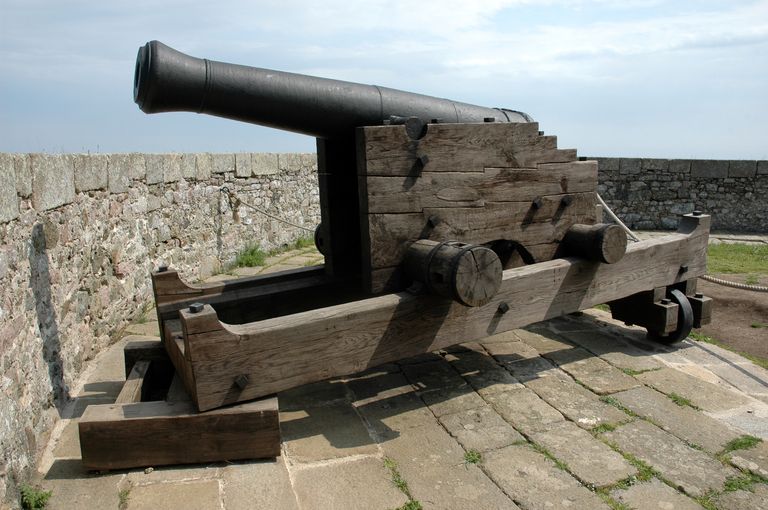 Vue du Fort La Latte : reconstitution d'un canon sur affût à châssis pivotant type GribeauvalImmatriculation