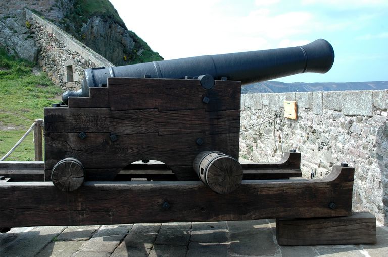 Vue du Fort La Latte : reconstitution d'un canon sur affût à châssis pivotant type GribeauvalImmatriculation