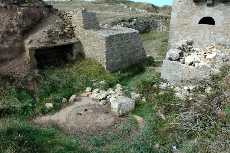 Vue de la batterie de Loqueltas. Emplacement d'une pièce d'artillerie moderne en place lors de la Seconde Guerre Mondiale. A signaler : une niche à munitions au standard allemandImmatriculation