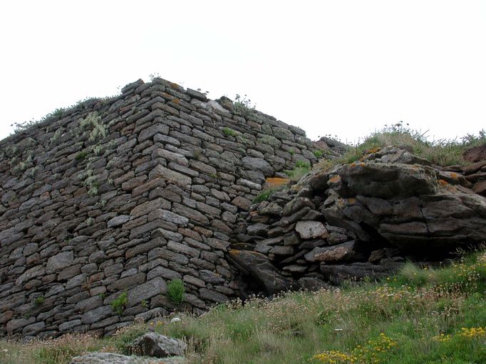 Vue de détail depuis l'ouest : liaisonnement du parapet avec le rocher (état en 2006)Immatriculation