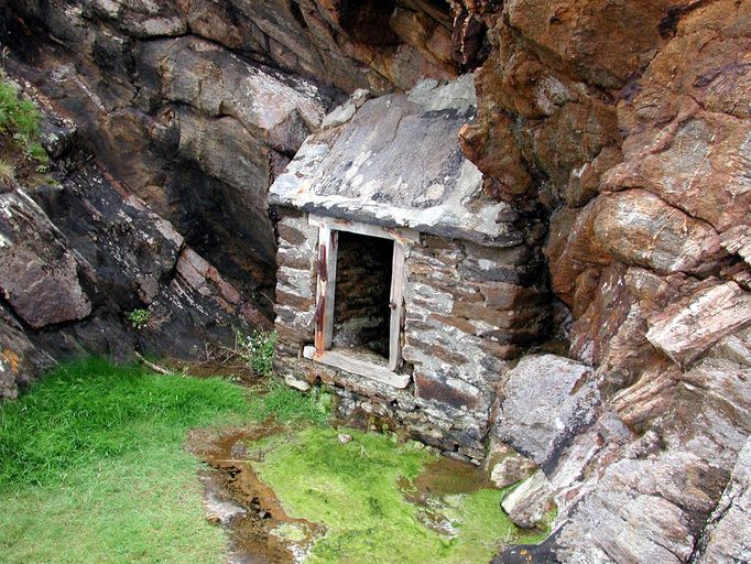 Vue de l'aiguade de la pointe de Kermorvan, petit édifice en maçonnerie abritant la fontaineImmatriculation