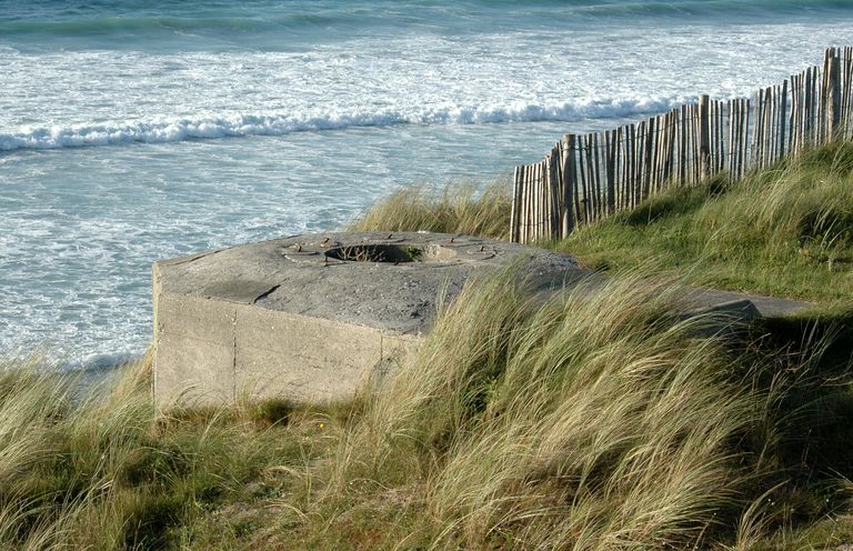 Vue d'un poste d'observation et de tir dit Tobruk-Stand dominant la plage des Blancs SablonsImmatriculation