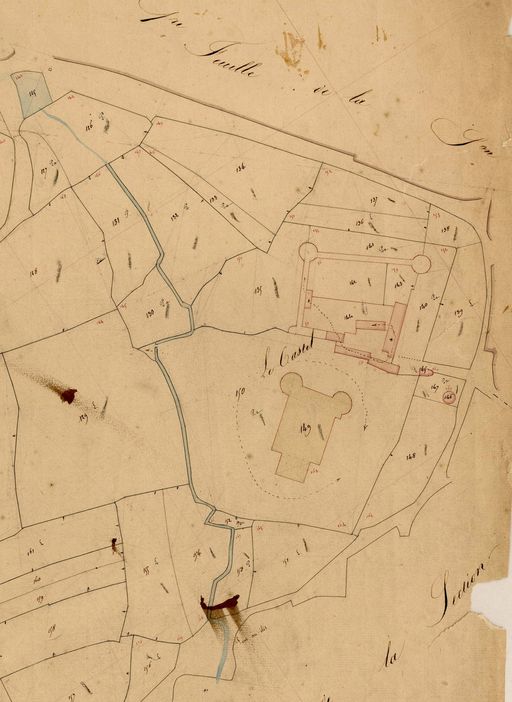 Extrait du cadastre parcellaire de la commune de Landunvez : château fort de Trémazan, 1844, Archives Départementales du FinistèreImmatriculation