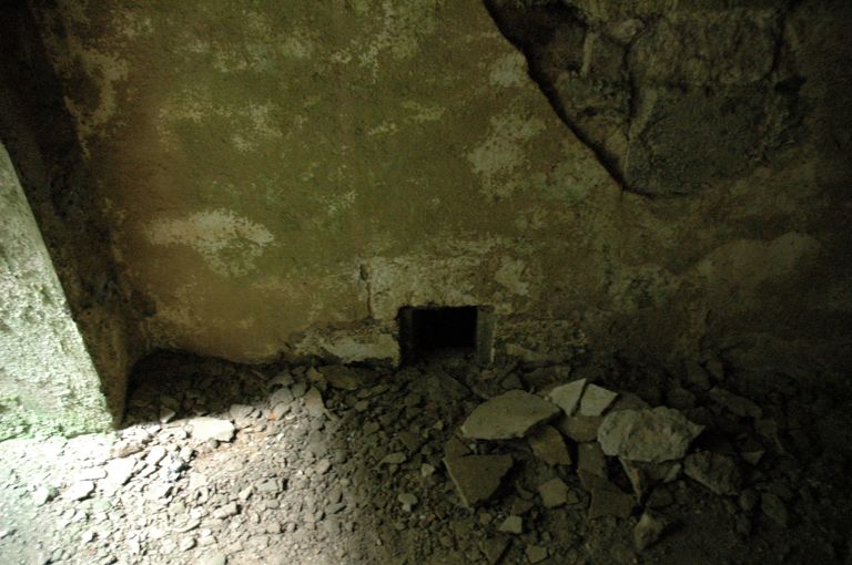 Vue de la caserne défensive Robert : troisième salle voûtée, évent d'aération du magasin à poudreImmatriculation