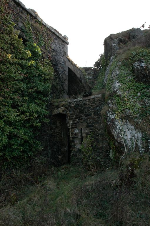 Vue de la caserne défensive Robert : entrée du magasin à poudre flanquée d'un créneau de fusilladeImmatriculation
