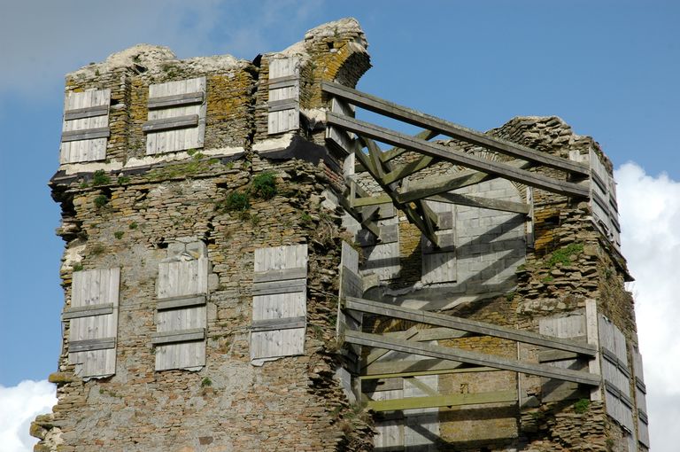 Vue du donjon : niveaux supérieurs (consolidation par étaiement mise en place en 2000)Immatriculation