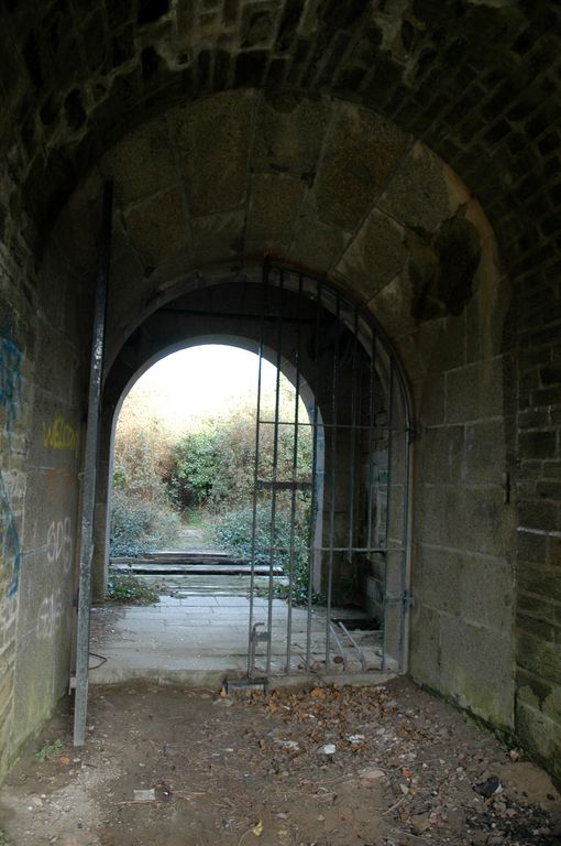 Vue du passage d'entrée voûté en berceau et de la grille fermant l'accès à la redoute (état en 2006)Immatriculation
