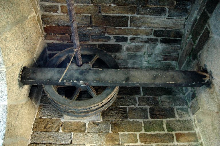 Vue du passage d'entrée : vestiges du pont-levis à contrepoids (état en 2006)Immatriculation