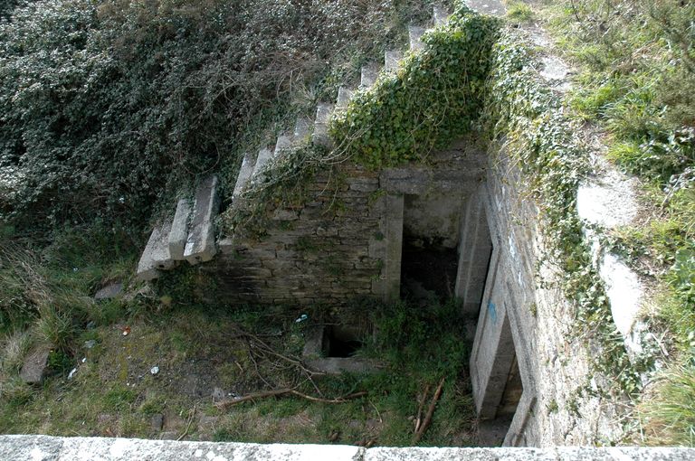 Vue de l'escalier desservant la plate-forme (état en 2006). Le regard est celui de la fosse des latrinesImmatriculation
