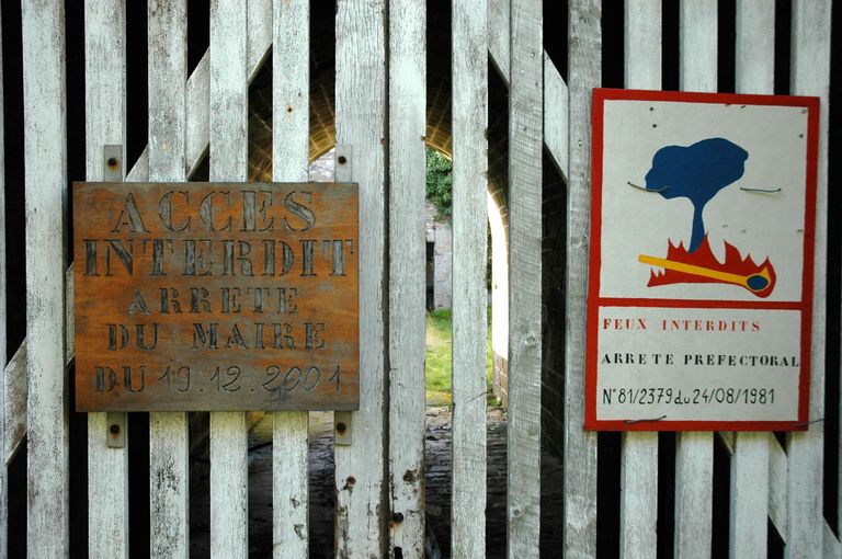 Vue de la signalétique en place sur la porte d'entrée en claire-voie (état en 2006)Immatriculation