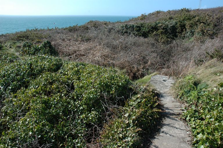 Vue de l'ensemble fortifié de Porsfeunteun : ouvrages allemands envahis par la végétationImmatriculation