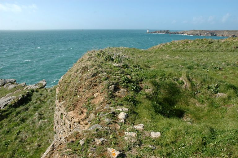 Vue de l'ensemble fortifié de la pointe du Renard : batterie de côte. Un poste d'observation et de mitrailleuse dit en nid de pie a été aménagé en avant de la casemateImmatriculation