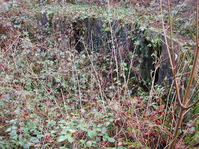 Vue de la batterie antiaérienne de Keroual : encuvement pour canon de 10,5 cm envahi par la végétationImmatriculation