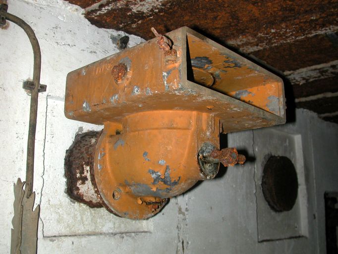 Vue de la chambre de troupe de gauche : filtre dépoussiéreur du système de ventilation (état en 2003)Immatriculation